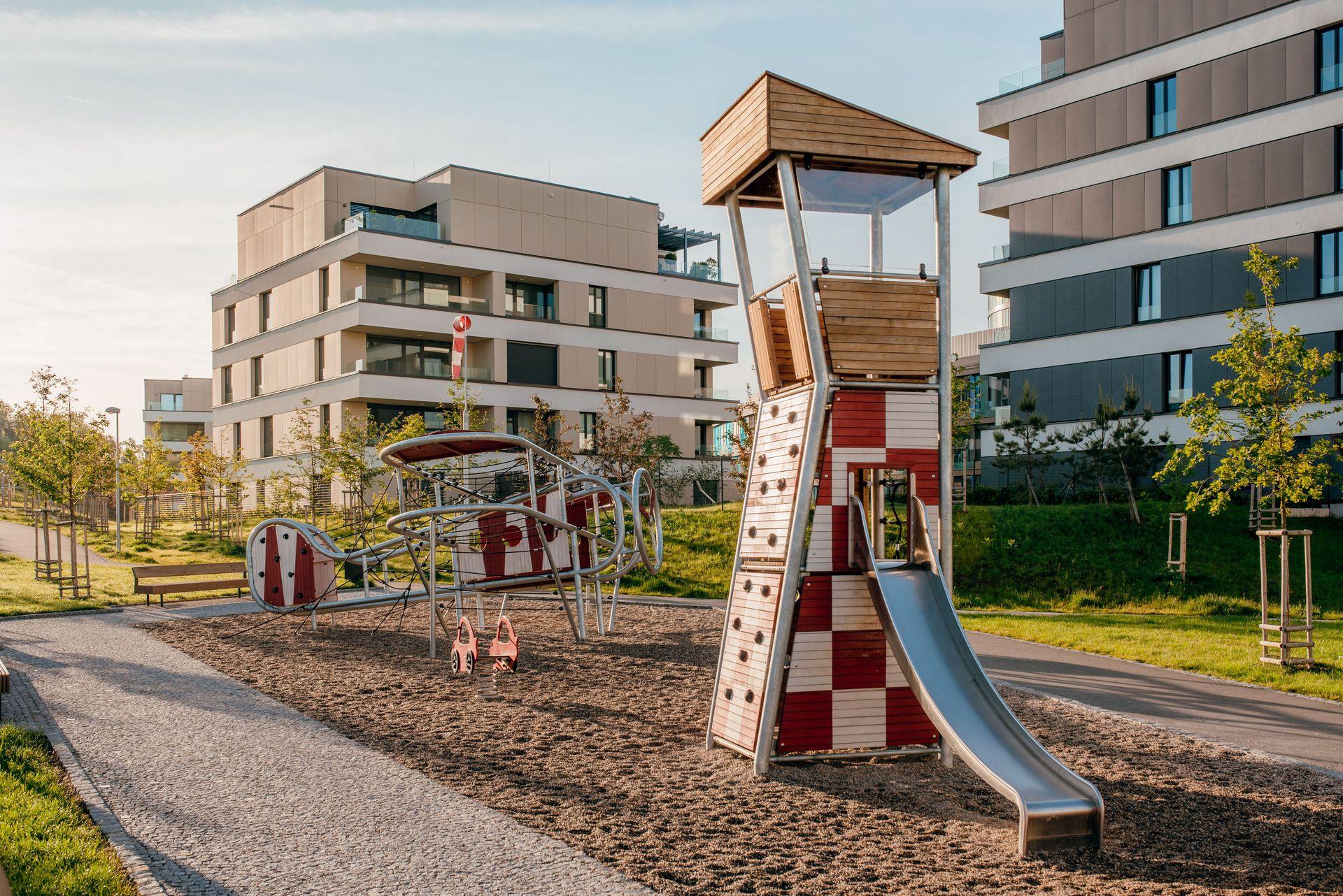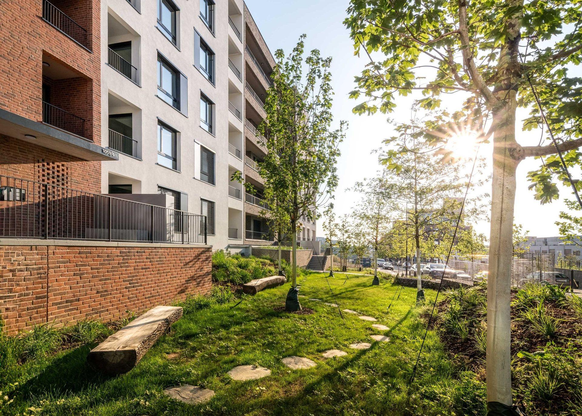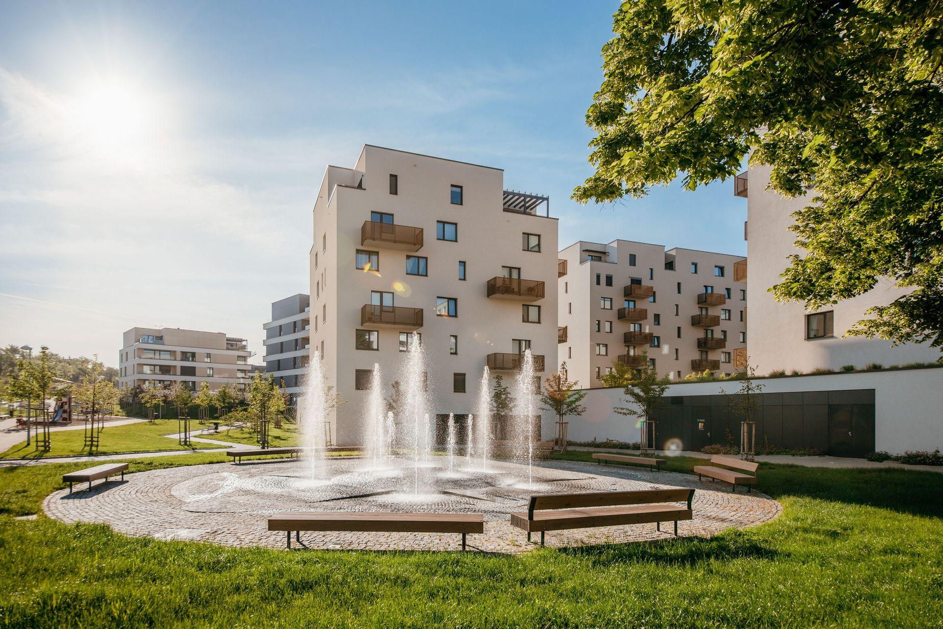 | Více+ | Většina bytů má vlastní terasu, lodžii nebo předzahrádku, podzemní parkovací stání a v domech jsou sklepní kóje či prostor pro mytí kol, kočárků i zvířecích mazlíčků. Dokončení bytů v etapě F: Q1 2027. |